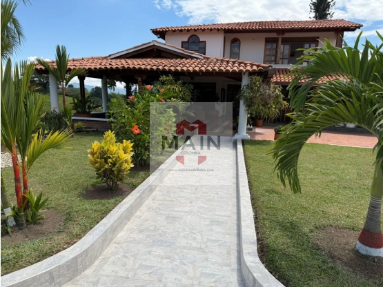 Espectacular chalet en Alcalá. La propiedad está ubicada sobre una vía pavimentada en excelente estado y a pocos metros del casco urbano del municipio. La separan sólo 5km de Quimbaya, Quindío,  12km de Filandia y 30 minutos de Pereira o Armenia. Cuenta con todos los servicios públicos; agua potable, electricidad y gas domiciliario. Además con un hermoso arroyo de aguas propias que nace dentro de la propiedad. Asimismo, podemos encontrar gran variedad de árboles frutales como limón, naranja, mandarina, mangostino, liches, ciruela, aguacate, plátano, banano y otros. La propiedad es un gran jardín florecido por donde puedes caminar con seguridad y confort. El chalet esta conformado por varias construcciones sólidas, amplias e iluminadas: 1. la casa principal es una construcción de dos pisos muy iluminados con tres habitaciones, tres baños, cocina grande, corredores, sala exterior, sala interior, comedor, piscina, jacuzzi, kiosko con estufa ecológica .